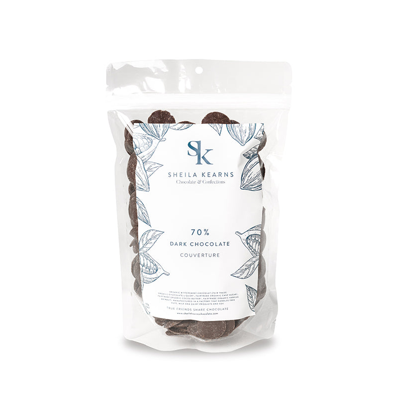 70% Dark Agostoni chocolate. We do not use any wheat or wheat products in our kitchens or facilities.