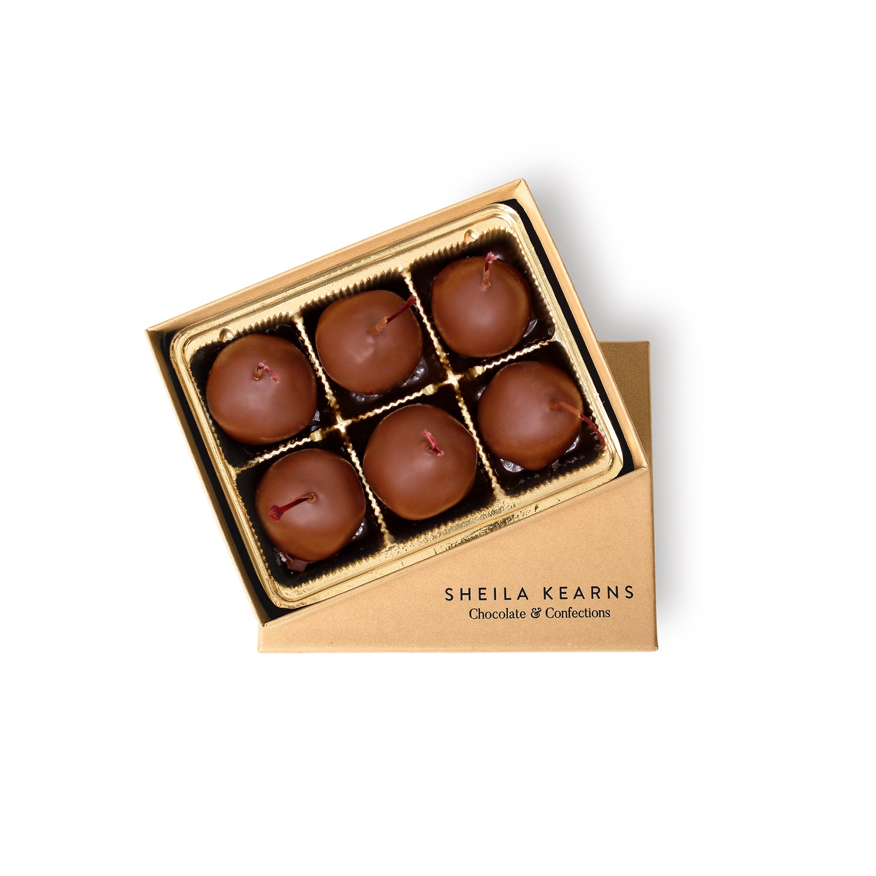 Our small gift box includes 6 hand-crafted organic, artisan chocolate cherries with no artificial colors.
